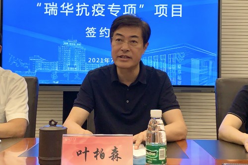 叶柏森介绍了我校医学教育办学历史和办学现状以及我校师生抗击新冠疫情的情况,他代表学校对瑞华慈善基金会表示衷心感谢。瑞华基金会在我校设立“瑞华抗疫专项”,不仅是对医学师生支援南京的充分肯定,更是体现了瑞华的大爱之心,必将对我校医学师生起到莫大的激励作用,更加坚定我们战胜疫情的决心和信心。