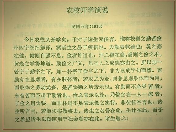 1914年,张謇为农学校题写校训:勤苦俭朴。