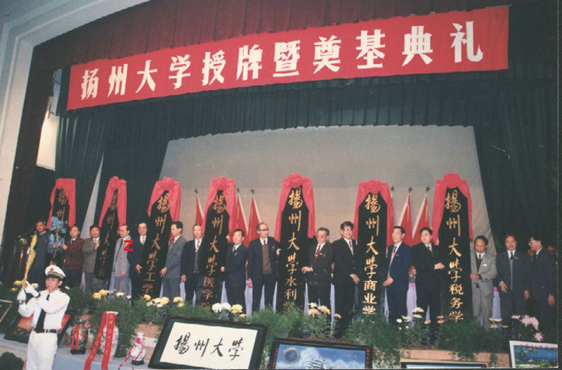 1993年11月6日,扬州大学授牌暨奠基典礼在农学院礼堂隆重举行。《人民日报》、中央人民广播电台、《光明日报》等十多家新闻单位相继报道了校牌授牌和综合楼奠基盛况。