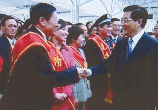 2004年5月1日,胡锦涛同志在视察扬州期间亲切接见刘秀梵院士