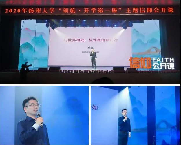 2020年10月7日,汉语言文学专业1999届校友孙鉴、文秘专业2009届校友周立言应邀参加校团委开展的“领航·开学第一课:向梦想奔跑”主题信仰公开课,分享自己的学习、生活和工作经历。