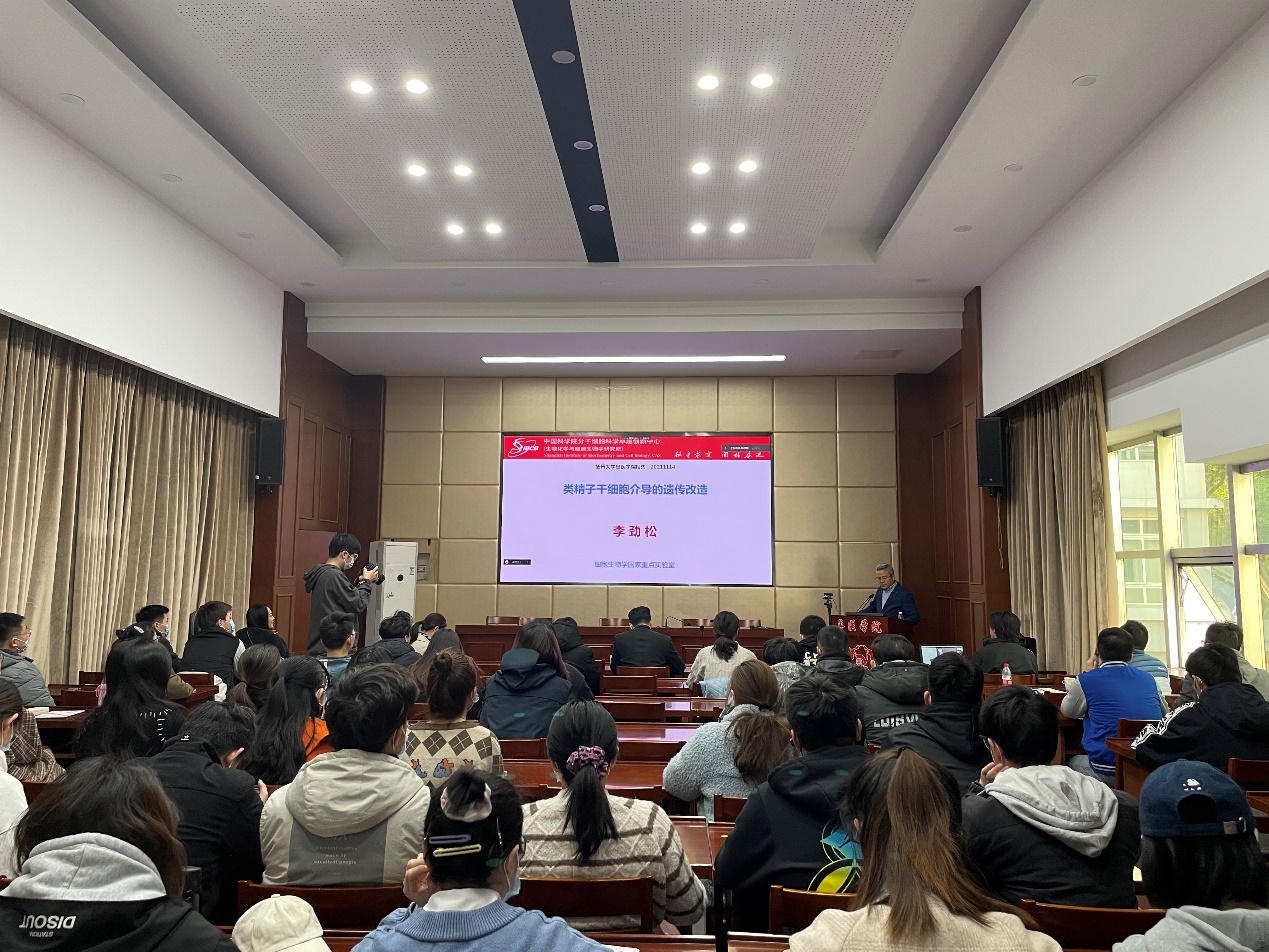 2021年11月14日,中国科学院院士,实验动物学(硕士)专业1996届校友李劲松应邀为师生作“类精子干细胞介导的遗传改造”报告。