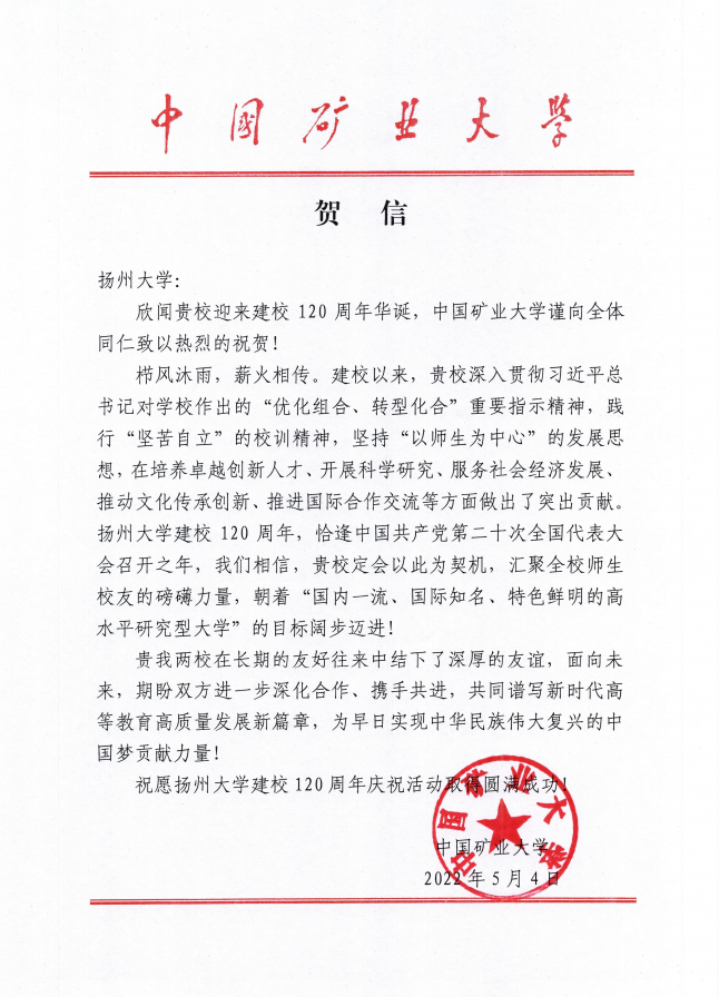 首页 > 感恩母校 > 贺信祝福 > 正文