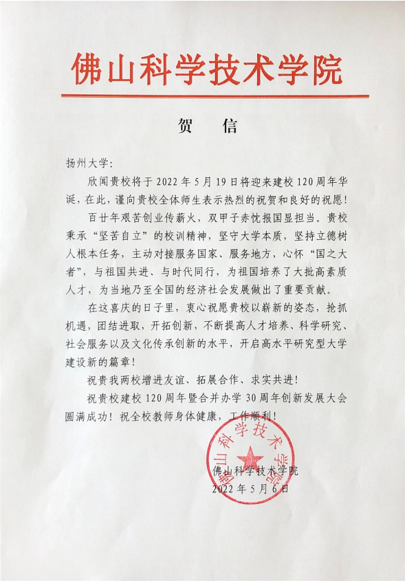 佛山科学技术学院贺信