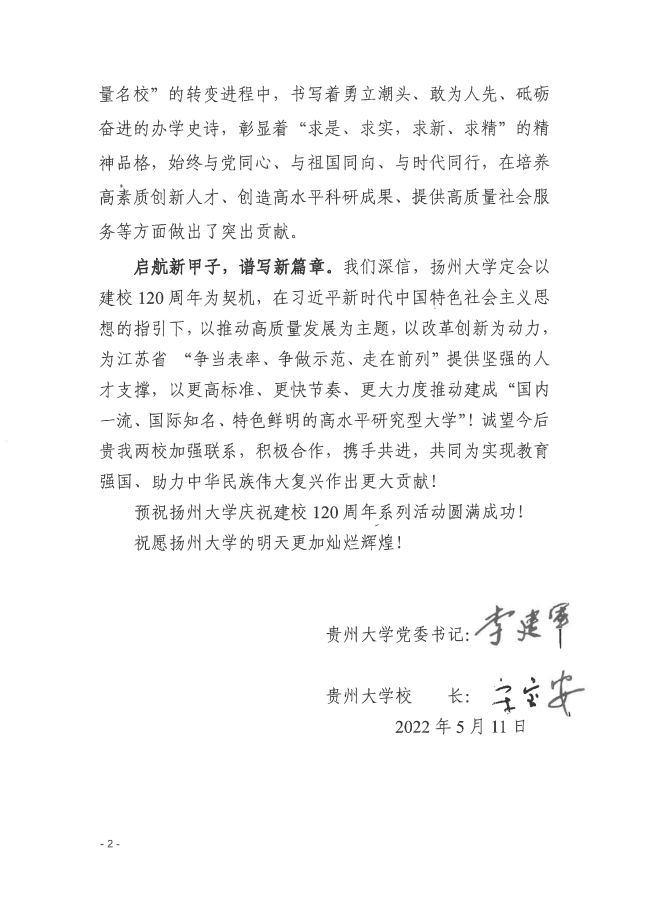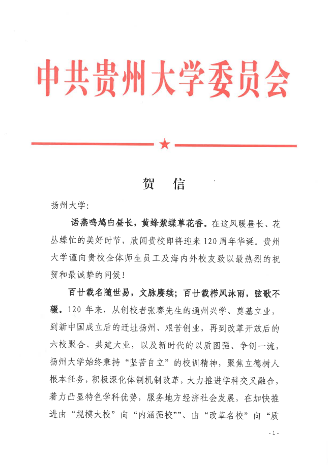 贵州大学贺信