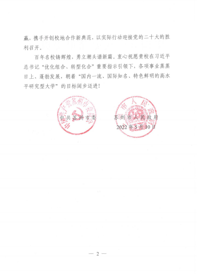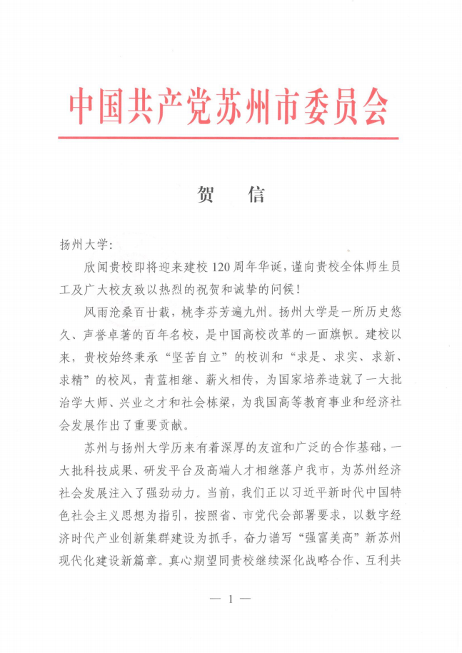 中共苏州市委、市政府贺信