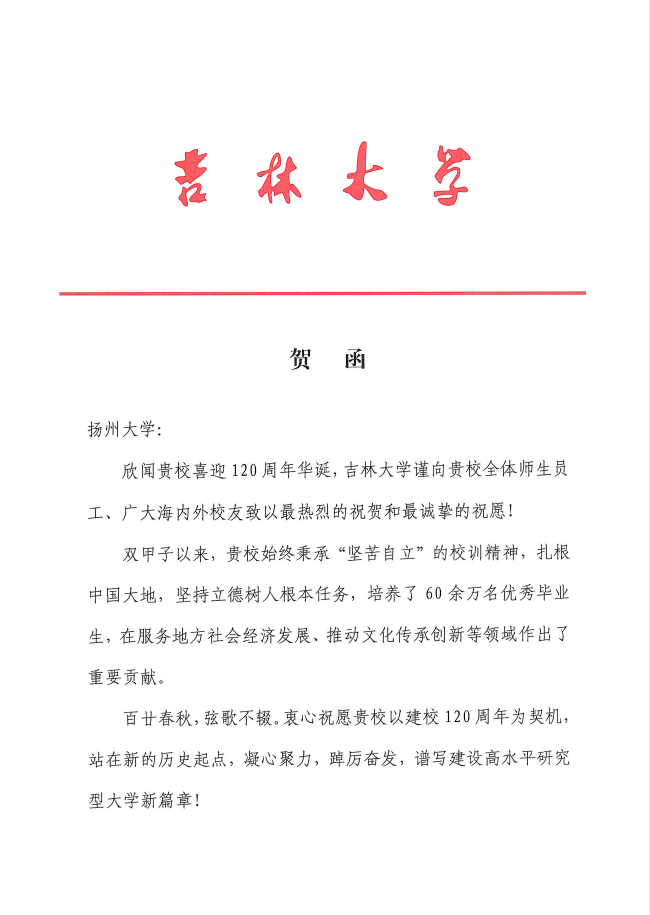 吉林大学贺信