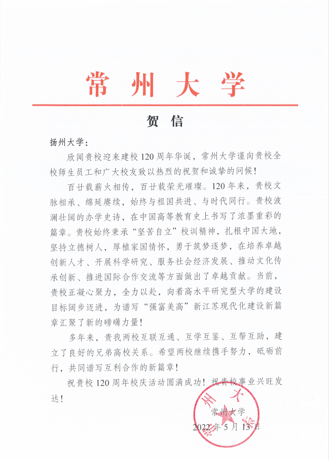 常州大学贺信